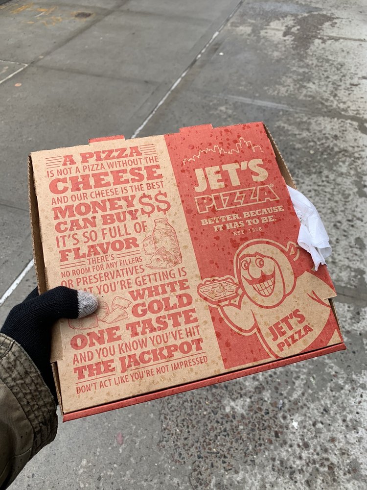 Customer reviews reflect a consistent satisfaction with fast delivery and a solid flavor profile, making Jet's a standout in New York’s pizza landscape.